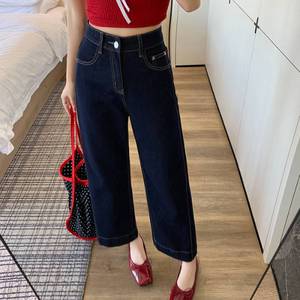 卸売リヨセルルーズワイドレッグバゲットパンツハイウエスト弾性ストレートレッグ梨型ボディ小柄な人痩身デニムミルク