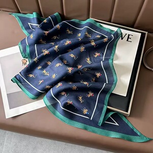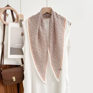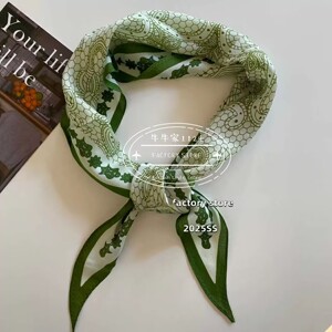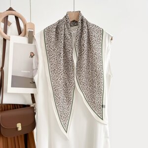 小さなヒョウ柄グリーンエッジシルクウールダイヤモンドスカーフ
