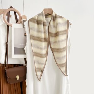グラデーションストライプ カーキ シルク ウール ダイヤモンド スカーフ