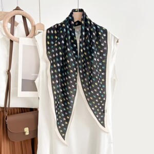 レトロな水玉模様のマルベリーシルクウールダイヤモンドスカーフ女性の夏の薄いアウターシャツとスカートギフト