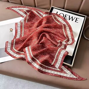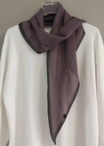 レッドストライプビーシルクウールダイヤモンドスカーフ