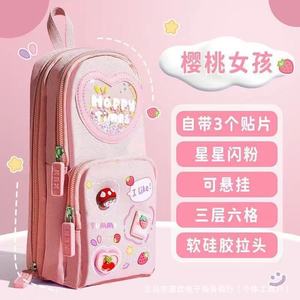 三層かばん筆袋中高生女の子多層大容量高颜値子供多機能文房具鉛筆ケース