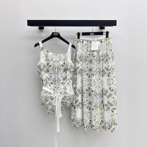 深センNanyou新蝶レース水溶性刺繍斜め襟バックレスサスペンダーハイウエストロングスカートカジュアル休暇スーツ