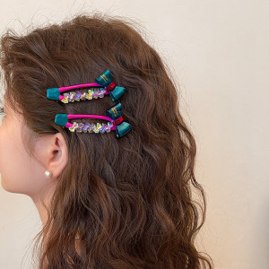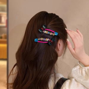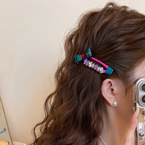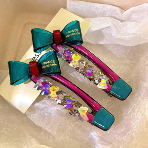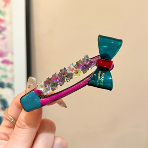 韓国蝶結びカラフルなクリスタルヘアピン女性のためのハイエンド 2025 新しい前髪サイドクリップカモノハシクリップヘアアクセサリー夏