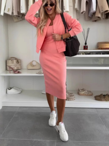 在庫多数 2025年夏越境Amazon人気無地サスペンダードレスカーディガンジャケットロングスカート2点セット