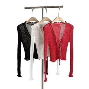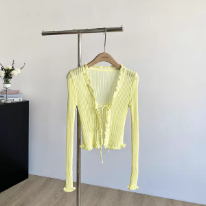薄手エアコンサスペンダースカート日焼け止めショールショートブラウスVネックデザインニッチ耳ニットカーディガン女性用