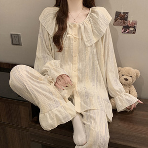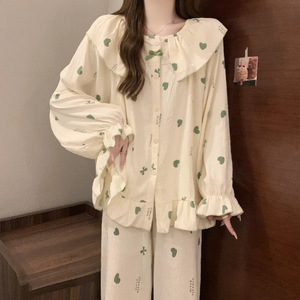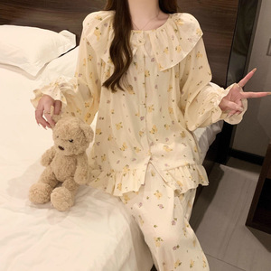 ベビードール襟パジャマ女性の春と秋の長袖 E スイートプリンセス花綿糸ホームウェア