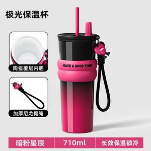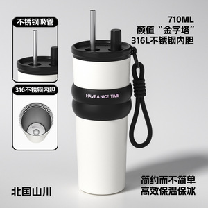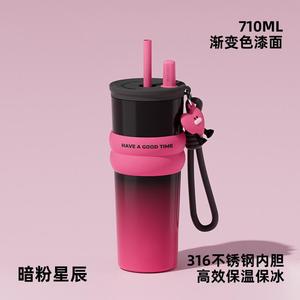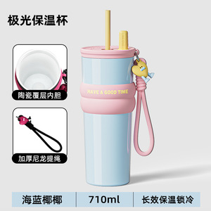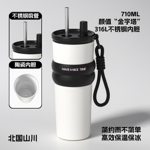 高颜値巨覇保温カップ316ステンレス陶磁器内胆コーヒー新氷覇カップストローカップ