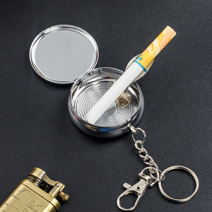 光沢のあるミニ金属灰皿ポータブル屋外ポケット小さな灰皿キーホルダー付き車の灰皿