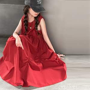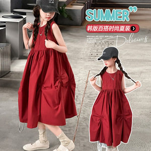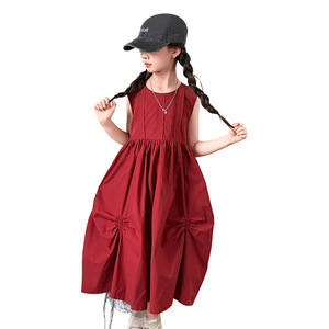 女の子の夏の綿のスカート 2025 新しい女の子の夏の韓国スタイルのノースリーブドレス子供の夏のロングスカート