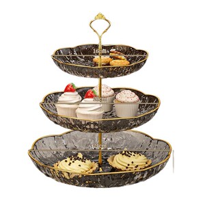 多層の軽い贅沢な果物の皿の下のお茶は果物の皿のお茶のいくつかの間食の乾燥した果物を並べて皿のバーのスナックの皿を置きます。
