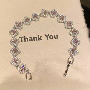 リッチガールの派手なピンクの四つ葉のクローバー ジルコン ブレスレット、女性用、春夏の韓国スタイルの新しい高価値の美白ハンドジュエリー