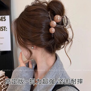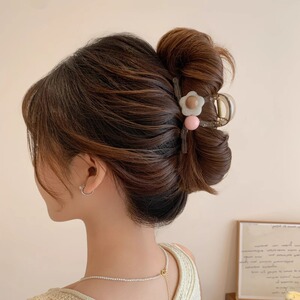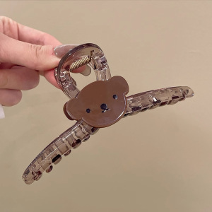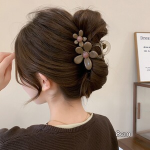 1#大きめ透明グレー下クリップ【ライトコーヒーパール】13cm