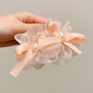 2#ホワイトメッシュ両面パール(下クリップ13cm、リボン20cm)