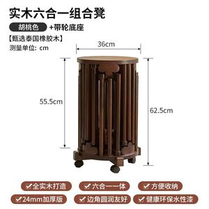 【グレードアップモバイルラック】AAA輸入ラバーウッド-ウォールナット色【スツール4脚スタッキング可能】