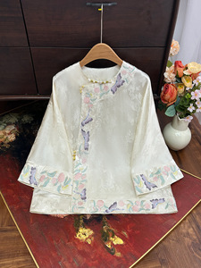新中国式の斜め襟の復古刺繍のシャツ2025年夏の新型の国風の上着の洋風はやせている感じのシャツを現します。