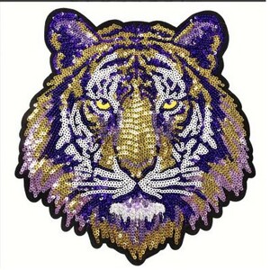 スポットスパンコール刺繍バッジイエロータイガーDIY大型布パッチ接着剤アイロンスタイル