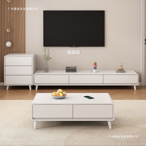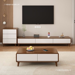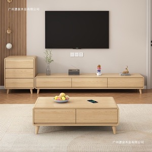 ログスタイル無垢材テレビキャビネットとコーヒーテーブルの組み合わせモダンシンプルなリビングルームホーム小さなアパートフロアキャビネットクリームスタイル