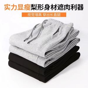 男士运动休闲裤春秋简约束脚卫裤遮肉显瘦神器青年纯色直筒宽松裤