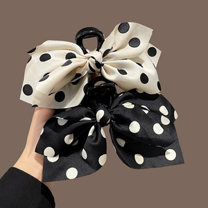 後頭部にハイエンドのフレンチリボンが付いた女性用水玉模様のヘアピン、韓国風の多用途ヘアアクセサリー、トレンディなアクセサリー