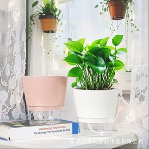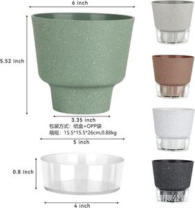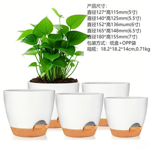 電商人気のレイジー吸水ポット既製品セット、厚みのあるPP植木鉢、トレイ付き、個別包装、ラベル付き、ドロップシッピング