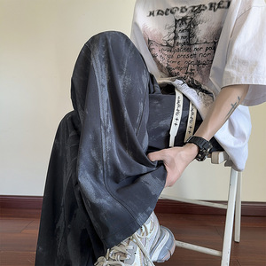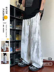 タイダイアイスシルクパンツメンズ春夏薄手2025新作ルーズストレートメンズパンツアメリカンスタイルドレープカジュアルパンツ