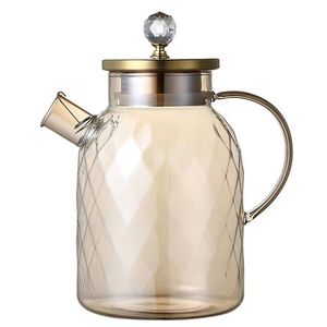 リビングルームの大きな口の水の壺にダイヤモンドの玉がついています。ステンレスの蓋蘭陵壺の夏の新型の琥珀色の冷たい水筒セットです。
