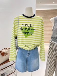 特大サイズ 120kg グリーンホワイトストライププリントルーズ長袖日焼け止め Tシャツ女性の夏のアウタートップ