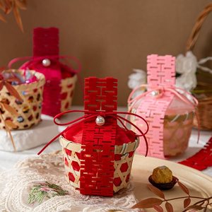 結婚式のキャンディーボックス竹バスケットフェルトハッピーキャンディーウェディングボックスクリエイティブ婚約結婚式のキャンディーバッグ