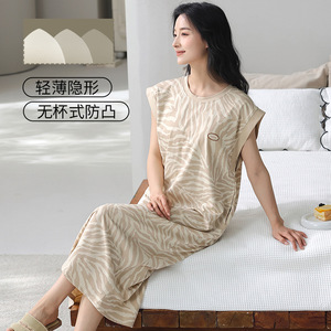胸パッド付き女性用涼しい綿ナイトガウン、ノースリーブベスト、夏の韓国風高級レディース夏マタニティパジャマ、ロングスカートドレス