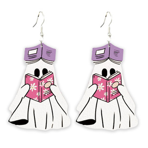 クロスボーダー Amazon ハロウィン ジュエリー かわいい ゴースト キャンディー ジャー 読書 教師 学校 木製プリント イヤリング