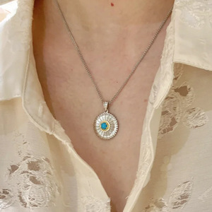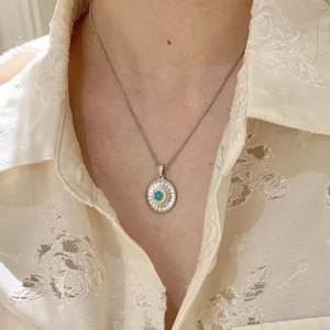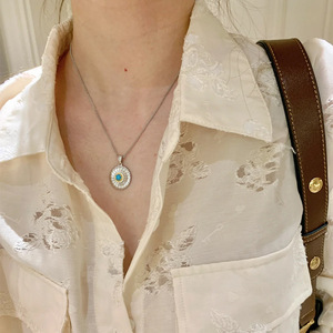 Xiaohongshu 人気の絶妙なレトロなターコイズデイジーブラッシュネックレスライト高級女性ハイエンド鎖骨チェーンドロップシッピング