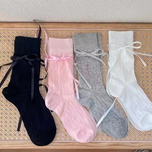 女性用ソックス、蝶結びミッドカーフソックス、女性用バレエ風フレンチストラップバレエ風ガールインパイルソックス、女性用
