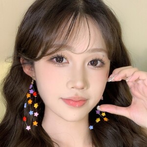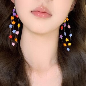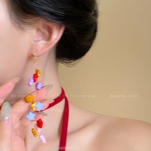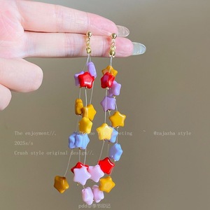 ドーパミンカラースタータッセルイヤリング女性ニッチデザインロングイヤリング小顔甘いガーリーハートイヤリング