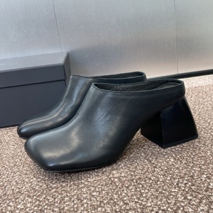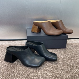 UMA ウォッシュドホースハイドハーフスリッパレディース包頭怠惰なアウターウェアサンダルレトロダメージ加工厚いヒールカジュアルシューズトレンディ