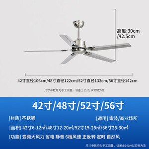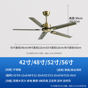 大風力工業風黒色レトロ吊り扇静音インバーターリビングファン灯家庭用商用無灯扇風機