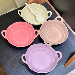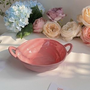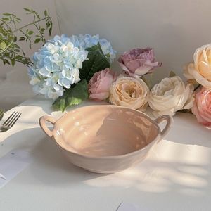 セラミック手絞り不規則な双耳ボウルフルーツサラダボウルインスタントラーメンボウルホーム寮学生食器カタツムリヌードル