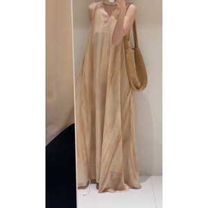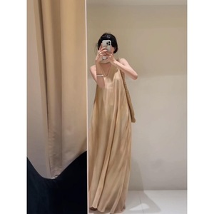 ビーチバケーションブルーミングVネックホルターネックドレスゆったりお腹カバーノースリーブキャミソールロングスカート