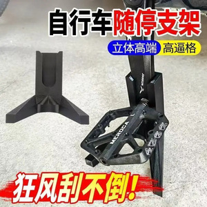 自転車の携帯用の足は止まっています。マウンテンバイクの駐車フレームを支えます。