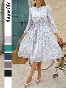 クロスボーダーリゾート風長袖ロングワンピース レディース 2025春夏 Amazon独立サイト ハイウエスト着痩せ
