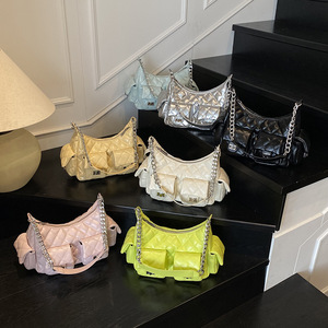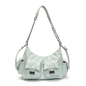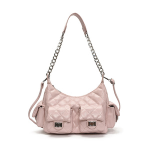新型菱格刺繍糸小香風バッグ女性2025クロスボーダー大容量斜めショルダーバッグチェーンシングル肩脇下バッグ