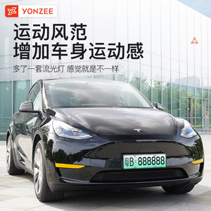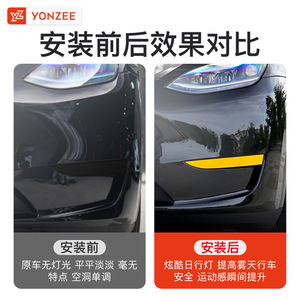YZ はテスラモデル 3/Y フロントフォグランプ反射ステッカー装飾ストリップ衝突防止警告標識修正アクセサリーに適しています
