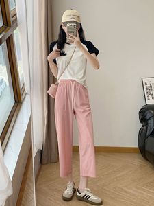 春夏の新作ハイウエスト伸縮性ウエスト9点ハーレムパンツ、ゆったり、スリム、ファッショナブル、シンプル、多用途、カジュアルガールズパンツ