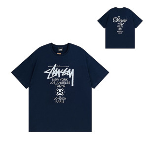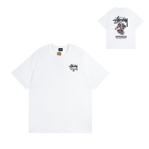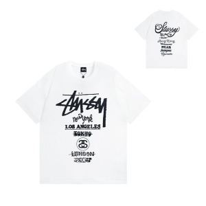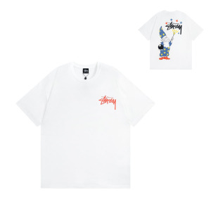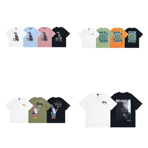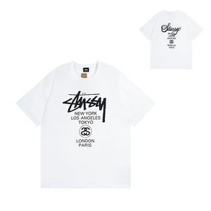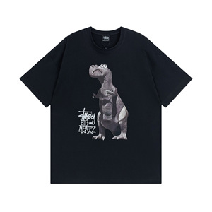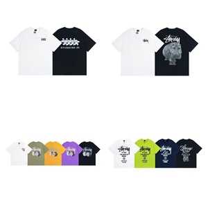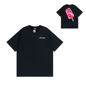 貿易ヨーロッパとアメリカのトレンディなブランド Stussy スチューシー ブラック 8 クラシック アイスクリーム 半袖 カップル 夏 ルーズ Tシャツ メンズ