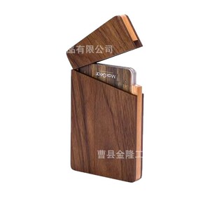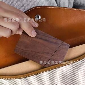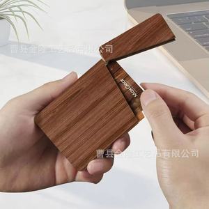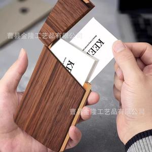 スポット木製名刺ホルダーポータブル名刺収納ボックス印刷可能なロゴ付きカバー付きブラックウォールナットスクエア