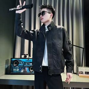 クロスボーダー春秋ハンサムスタイルストリートジャケットメンズバイカージャケット2025新作スリム韓国風