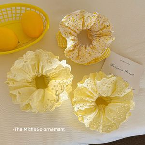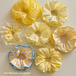 黄色系レース砕花大腸シュシュ合集高馬尾髪ひも女性は髪を傷つけずに丈夫で甘い髪ひもの髪飾りをしている