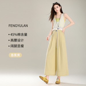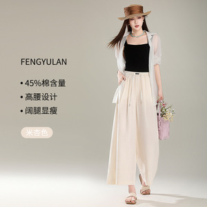 ゆったりとしたワイドレッグパンツ、イミテーションリネンレディースパンツ、夏用薄い肉をカバーするファッショナブルで通気性のある綿のキュロット2025新しいスタイル卸売