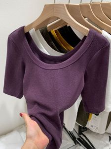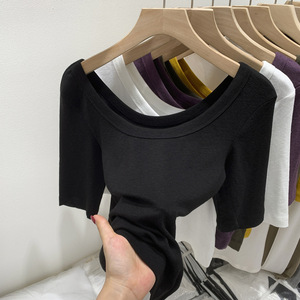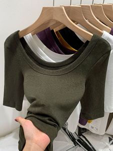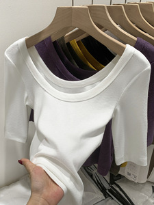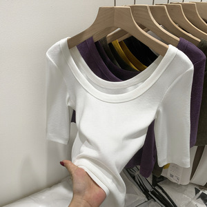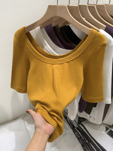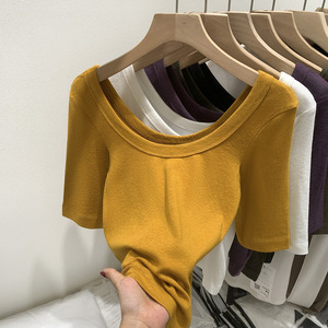 欧货爆款超好看U领修身短袖T恤女2025夏季新款独特漂亮减龄款上衣