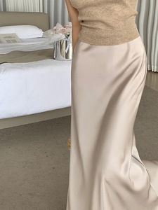 150 ショートフレンチアセテートサテンスカート女性のヒップカバーフィッシュテールスカートハイウエスト A ラインミッドレングススパンデックス